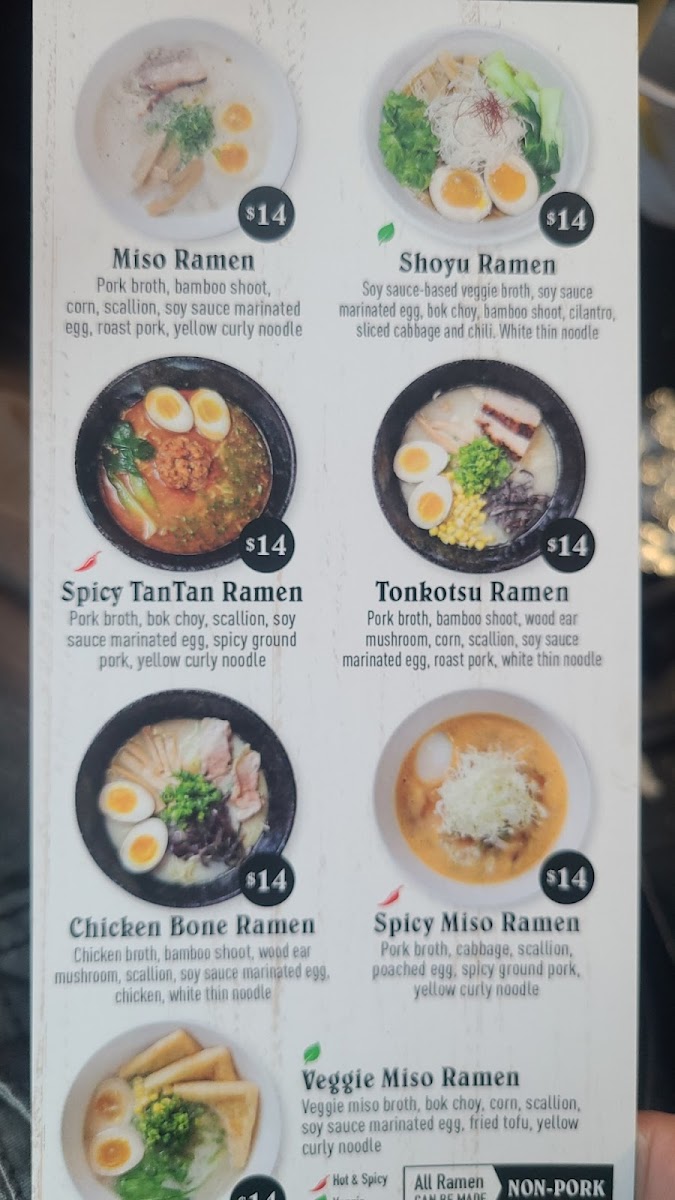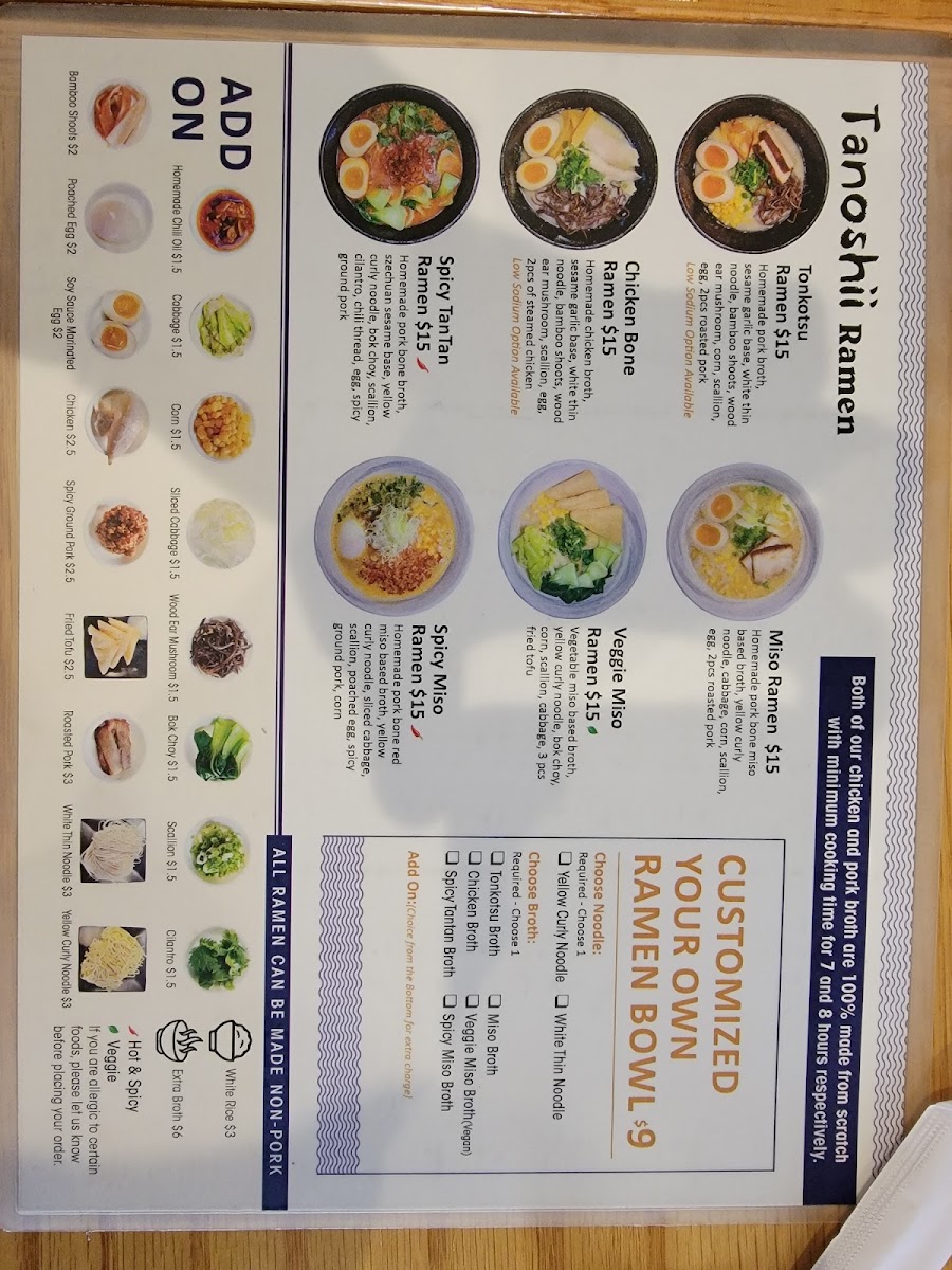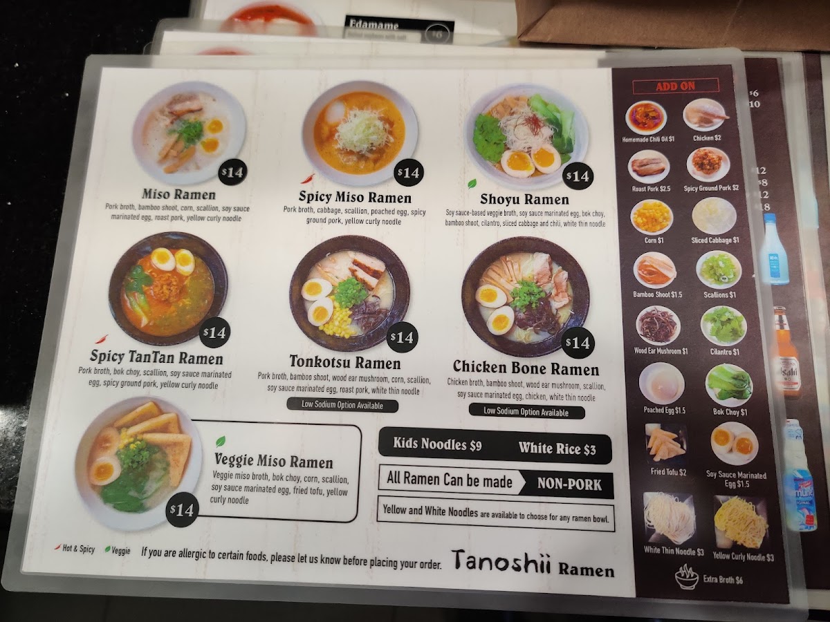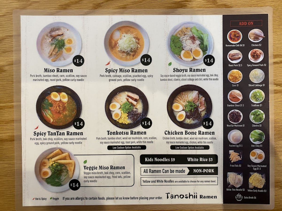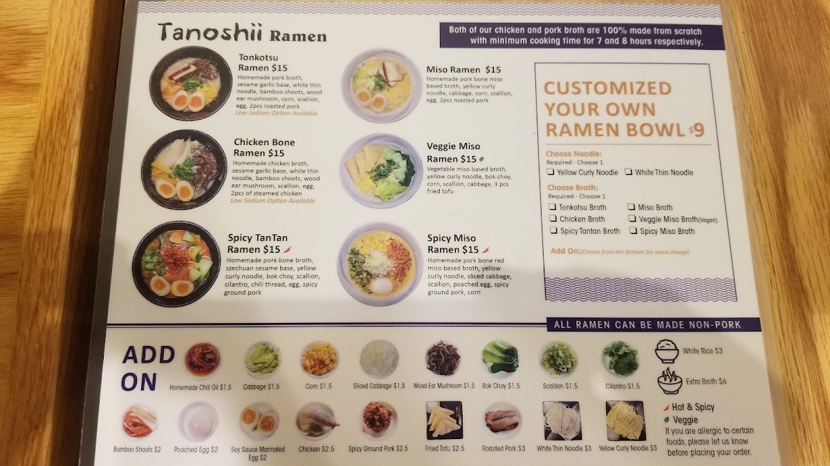 Tanoshii Ramen Menu